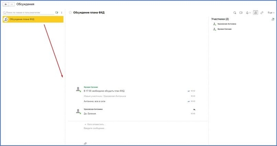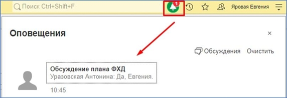После этого на верхней панели программы, нажав на значок колокольчика, можно увидеть список обсуждений. Когда по данному обсуждению будут приходить ответы от других пользователей, на значке колокольчика можно будет увидеть уведомление об этом (значок окрасится в зеленый цвет, а цифрой в красном кружке будет отображаться количество уведомлений):