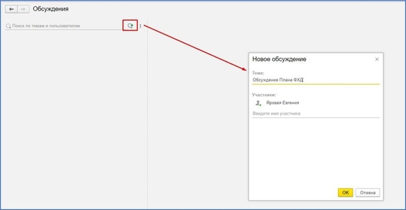 В открывшемся окне необходимо нажать на кнопку создания нового обсуждения и указать тему: