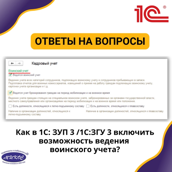🔧 Включение воинского учета в вашей системе 1С осуществляется в несколько шагов: