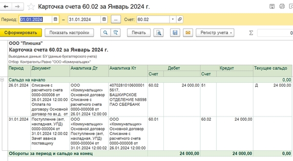 Более подробно операции по счету 60.02 можно посмотреть в карточке счета ниже.