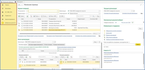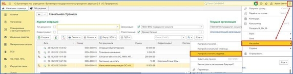 В БГУ 2.0 можно настроить панель разделов. Это может понадобиться в том случае, если какие-то из разделов бухгалтеру не нужны. Например, если бухгалтер ведет учет определенного участка.