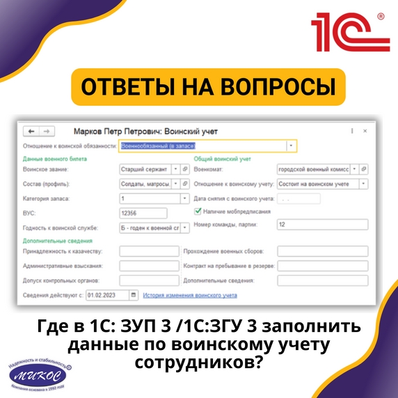 💻 Ответ: Для того чтобы правильно заполнить данные по воинскому учету в программах 1С: ЗУП 3 / 1С:ЗГУ 3, следуйте этим шагам: