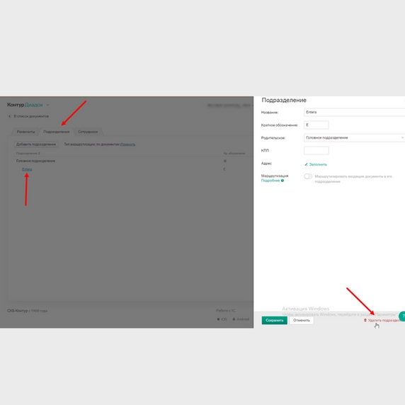 Вариант 2: После получения ответа перейдите в личный кабинет Диадок - выберите "Настройки" - "Подразделения" - выберите подразделение Entera - нажмите "Удалить подразделение".