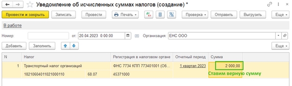 Откроется новое скопированное уведомление со старой суммой налога. Исправьте неправильную сумму на верную.