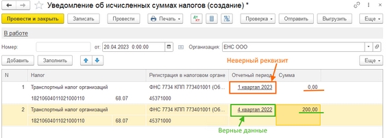 Чтобы исправить ошибку, создайте новое уведомление путём копирования старого. В строке с ошибочным отчётным периодом исправьте сумму налога на «0» и создайте вторую строку с верным отчётным периодом и суммой налога к уплате.