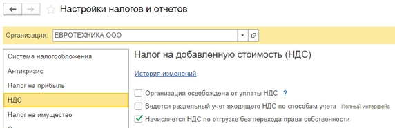 Важно! Нельзя без наличия копии базы и важных причин снимать флаг «Ведется раздельный учет НДС» - это может повлечь за собой сбой в регистрах НДС, некорректное формирование отчетности по НДС.