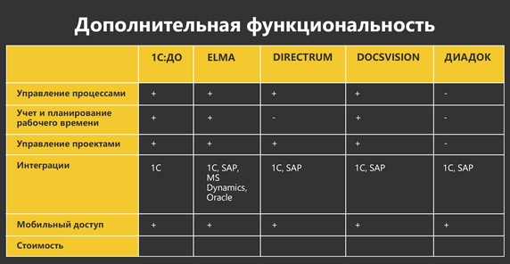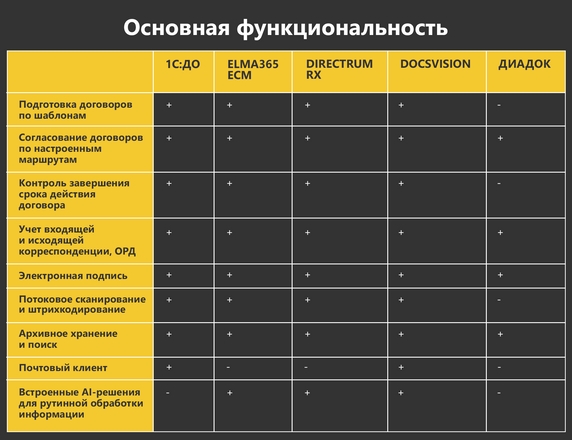 Ниже мы подробнее разобрали отличия в функциональности популярных ECM-систем.