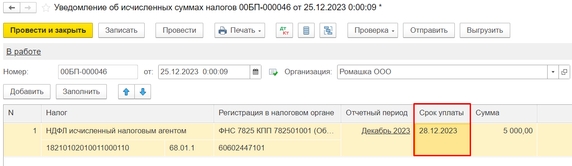 Тогда во всех документах уведомлений появится колонка со сроком уплаты и будет возможность вручную исправить срок уплаты в уведомлении до 22 декабря и перепровести документы.