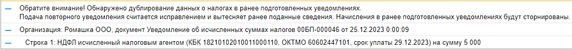При проведении уведомления за конец декабря программа выдавала предупреждение о дублировании данных и сторнировала суммы уведомления за начало месяца. Это связано с некорректным сроком уплаты в уведомлении до 22 декабря: вместо 29 числа по регистрам программы проходило 28 число, из-за чего и происходило замещение документа.