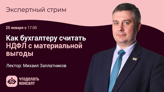 Смотрите экспертный стрим 25 января в 17:00 мск, чтобы узнать, как избежать рисков неначисления НДФЛ с материальной выгоды.