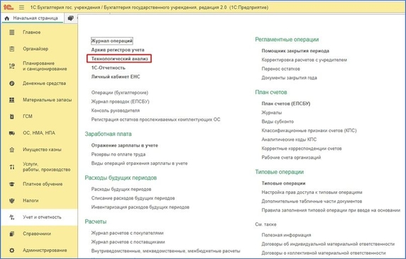 Найти технологический анализ можно в разделе «Учет и отчетность».