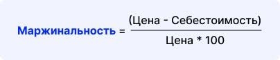 Маржинальность товара отражает долю прибыли в заработанном рубле. Её рассчитывают по формуле: