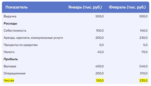 Итого в феврале бизнес заработал 700,0 тыс. руб., но стали больше обязательства по налогам. Сравним результаты за два месяца.