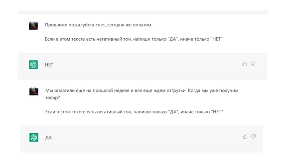 Мы работаем в amoCRM и все сообщения со всех источников приходят в единое окно. Через виджет Триггеры делаем запрос в API Open AI и просим нейросеть проанализировать входящее сообщение на наличие негативного тона. Если он есть, кидаем сообщение в общий чат в телеграм, где его увидит нужный человек и среагирует.