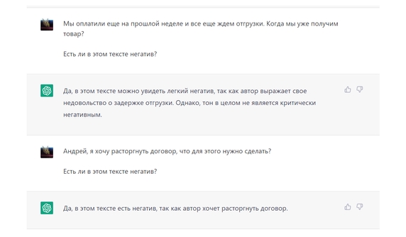 «Текст входящего сообщения» Есть ли в этом тексте негатив?