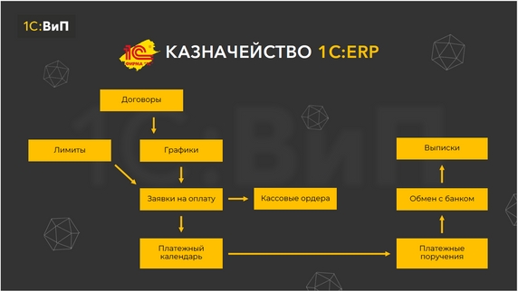В теории его автоматизация не представляет особого труда. Но проблема в том, что модуль казначейства в флагманском продукте «1C:ERP Управление предприятием» (а также в «1С:Комплексная автоматизация» и «1С:Управление торговлей») не имеет необходимой для этого функциональности.