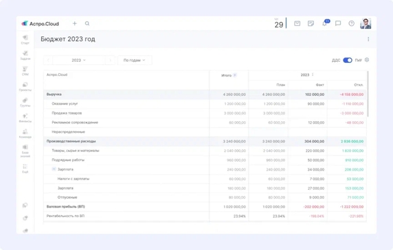 Аспро.Cloud предлагает функционал для составления бюджета и графика отпусков. Руководителю достаточно открыть две вкладки, чтобы корректно спланировать расходы компании на отпуска сотрудников и избежать кассового разрыва.