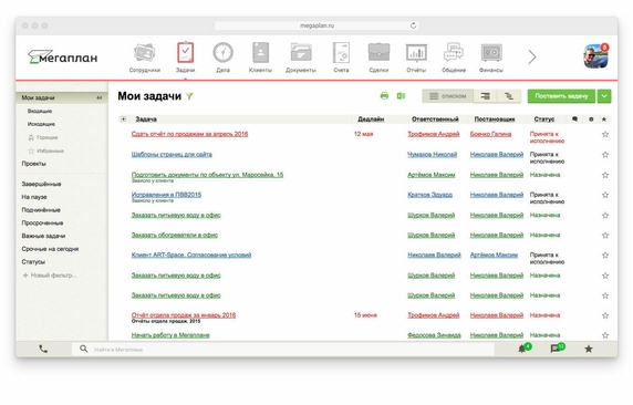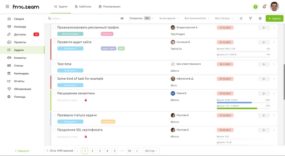 - формирование отчетности по проектам, задачам, производительности сотрудников;