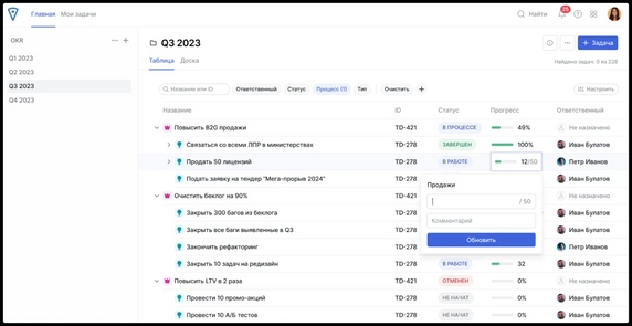 TeamStorm — функциональная альтернатива Jira, разработанная для эффективного управления проектами. Она позволяет адаптировать процессы под разные методологии, а также отслеживать ключевые показатели эффективности (KPI) и цели по OKR.