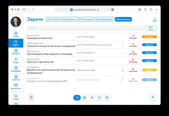 - контроль выполнения задач по проектам;