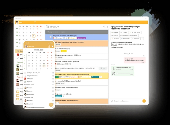 - синхронизация с Google, Yandex и календарями Apple, интеграция с Figma, Google Docs и другими сервисами;