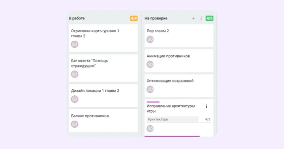 Например, стоит сфокусировать внимание команды на самых важных функциях сайта, не теряя времени и сил на то, что менее важно. Чтобы сократить число текущих задач и запретить брать в работу всё и сразу, можно использовать инструмент WIP-лимитов (Work-In-Progress). Благодаря этому инструменту можно ограничивать количество задач для разных колонок на Канбан-доске. Новые дела можно брать в работу на определенных этапах, только если не достигнут WIP-лимит. Пример реализации таких лимитов в таск-трекере Kaiten: