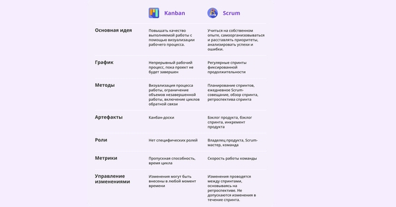 Отличия также можно найти в артефактах, в роли команд и даже в метриках. Чтобы вам было проще разбираться, мы собрали все данные в таблицу: