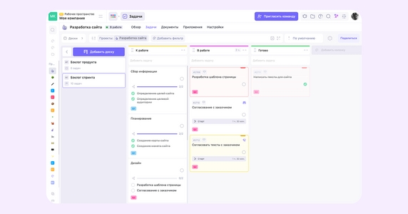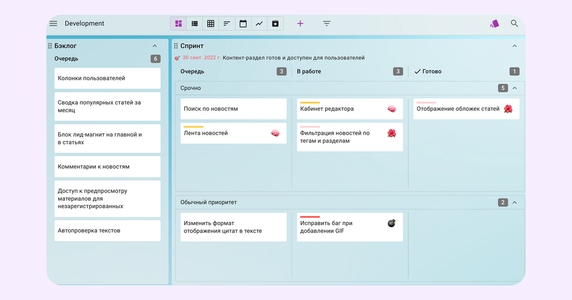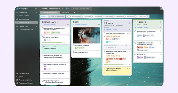 - Более широкие возможности для кастомизации по сравнению с другими системами: можно менять цвет карточек, добавлять к ним обложку, менять цвет колонок;