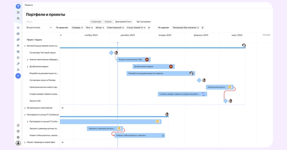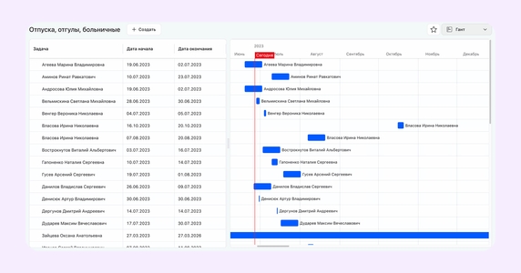 - Интерфейс диаграммы Ганта максимально приближен к интерфейсу MS Project, но выглядит современнее;