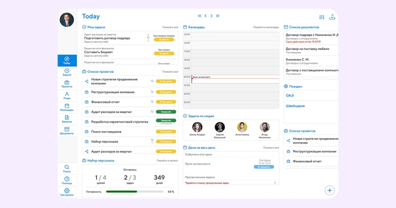 - Встроенные CRM-система и финансовая аналитика по проектам;