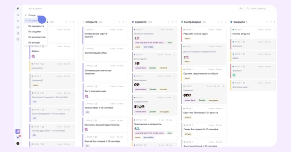 - Удобная работа с карточками задач — есть группировка, возможность создавать шаблоны, расставлять приоритеты и указывать теги;