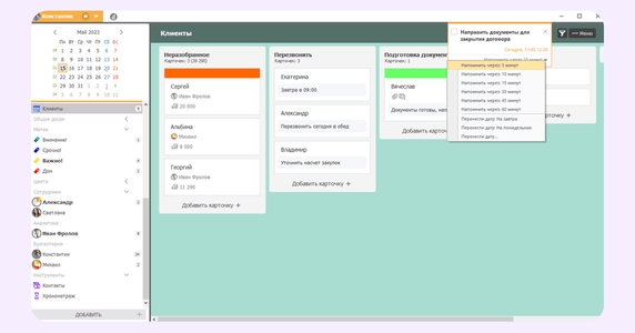 ЛидерТаск — планировщик, по которому на первый взгляд кажется, что он больше ориентирован на личное использование. Однако он подходит и для команд: помогает базово организовать работу, чтобы распределить задачи и назначить исполнителей. Есть канбан-доски, отчет об эффективности сотрудников, папки с задачами и встроенный календарь. Работать можно в веб-версии или в приложении для Windows, iOS, macOS или Android.