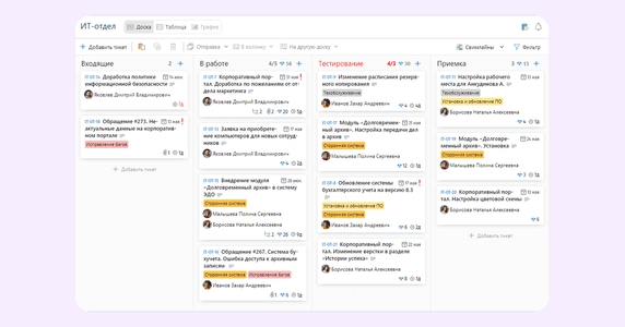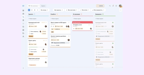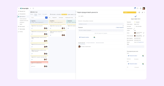 - Работа по Agile/Scrum/Kanban. Выбирайте сервис со встроенной поддержкой работы по Agile, где вам будет удобно отслеживать поток задач. Изучите, насколько легко контролировать выполнение заданий, перемещать карточки, выбирать ответственных и устанавливать WIP-лимиты.