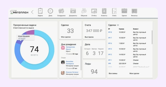 Сервис-конструктор для управления бизнес-процессами предприятий и отдельных команд. Помогает улучшать коммуникации сотрудников с клиентами, анализировать и планировать работу, управлять задачами и вести клиентскую базу. CRM настраивается под задачи отдела или компании, легкое управление нагрузкой сотрудников, сделками и затратами.
