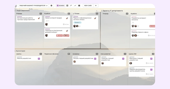Онлайн-система для управления проектами — создания и контроля выполнения задач, визуализации потока работ и отслеживания результатов. В платных тарифах можно автоматизировать часть рутинной работы с карточками.