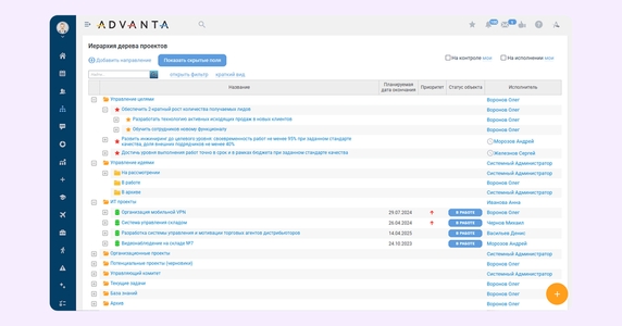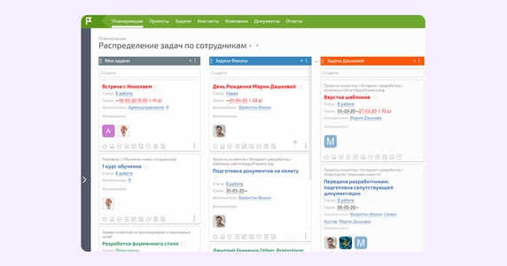 - управление ролями и доступом сотрудников к задачам и проектам;