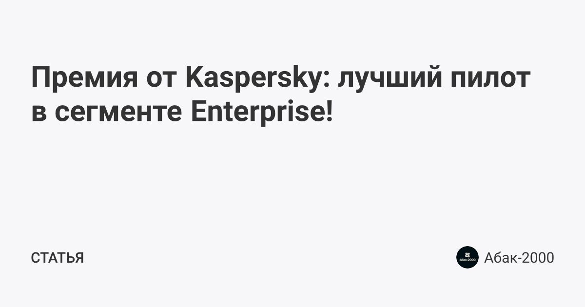Премия от Kaspersky: лучший пилот в сегменте Enterprise!