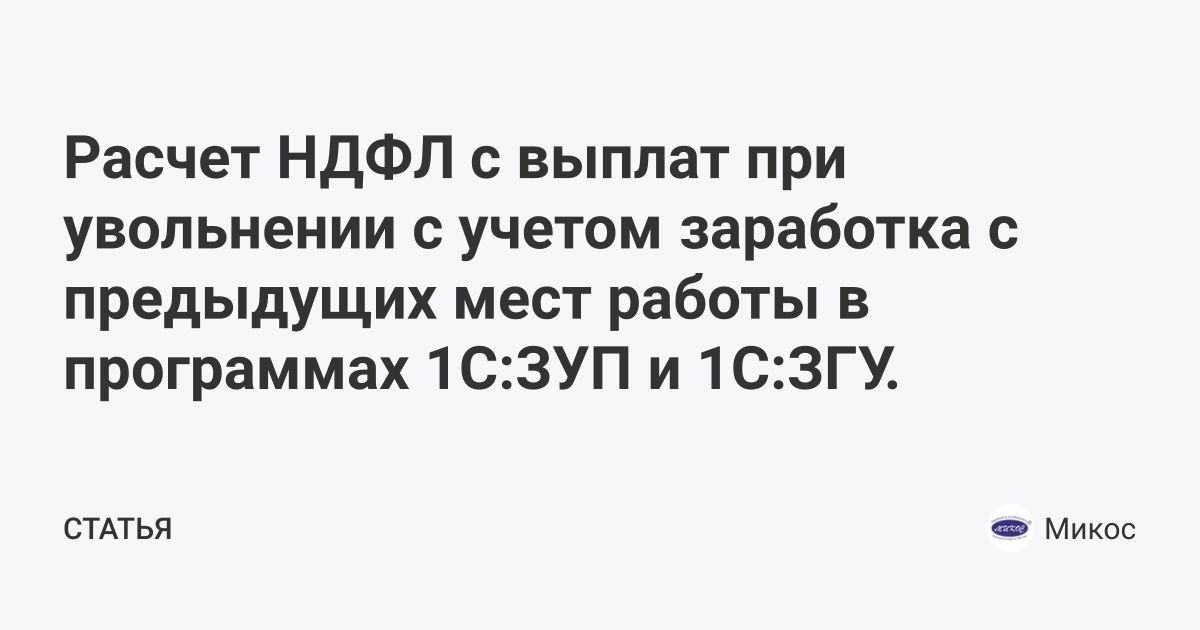 Расчет НДФЛ с выплат при увольнении с учетом заработка с предыдущих мест работы в программах 1С:ЗУП и 1С:ЗГУ.
