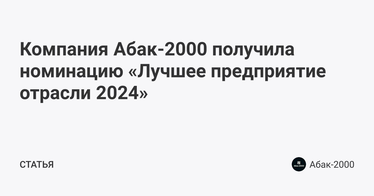 Компания Абак-2000 получила номинацию «Лучшее предприятие отрасли 2024»