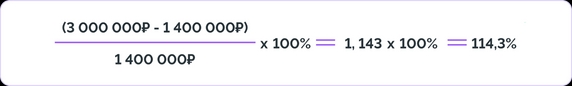 В этом случае коэффициент ROA будет равен 71%, так как расчет выглядит так: 500 000 ₽ / 700 000 ₽ х 100% = 71%.