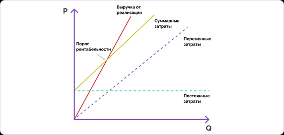 Порог рентабельности — это значение выручки, позволяющее фирме покрыть все свои расходы, которые связаны с получением этой выручки.