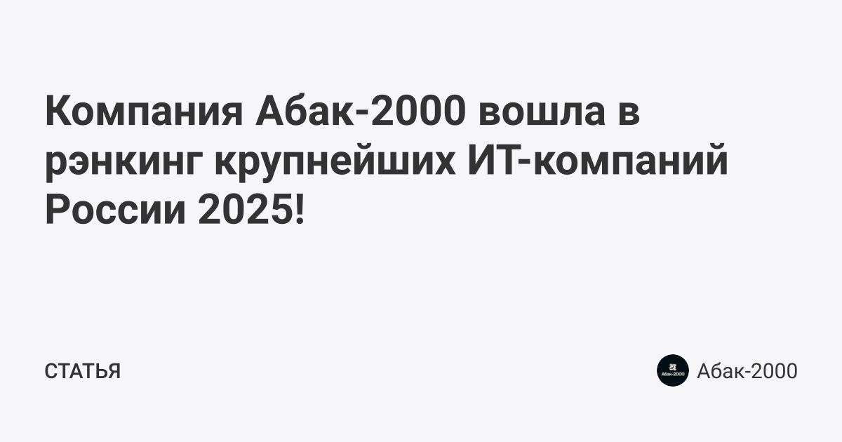 Компания Абак-2000 вошла в рэнкинг крупнейших ИТ-компаний России 2025!