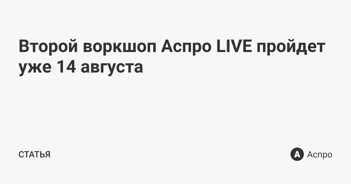 Второй воркшоп Аспро LIVE пройдет уже 14 августа