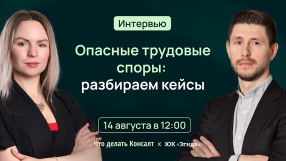 Заберете в работу ориентиры по сложным ситуациям, а еще сможете задать спикеру свой вопрос по трудовым спорам в прямом эфире. Регистрируйтесь, встречаемся 14 августа в 12:00.
