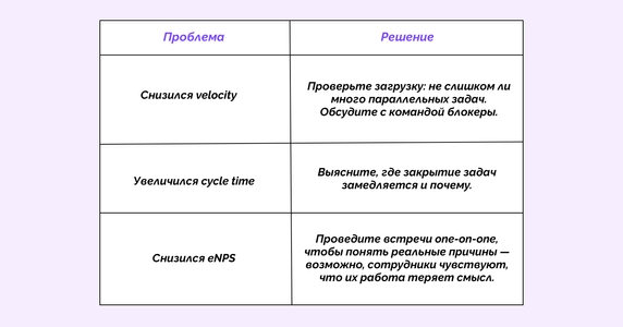 Если velocity начинает резко падать, это может сигнализировать о перегрузке, блокерах или потере мотивации.