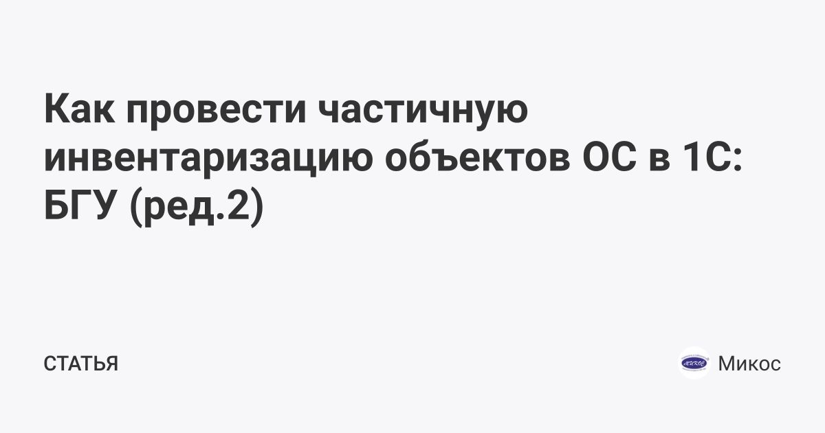 Как провести частичную инвентаризацию объектов ОС в 1С: БГУ (ред.2) | Микос (@mikos) | Мегасреда | 27.08.25, 07:00:00