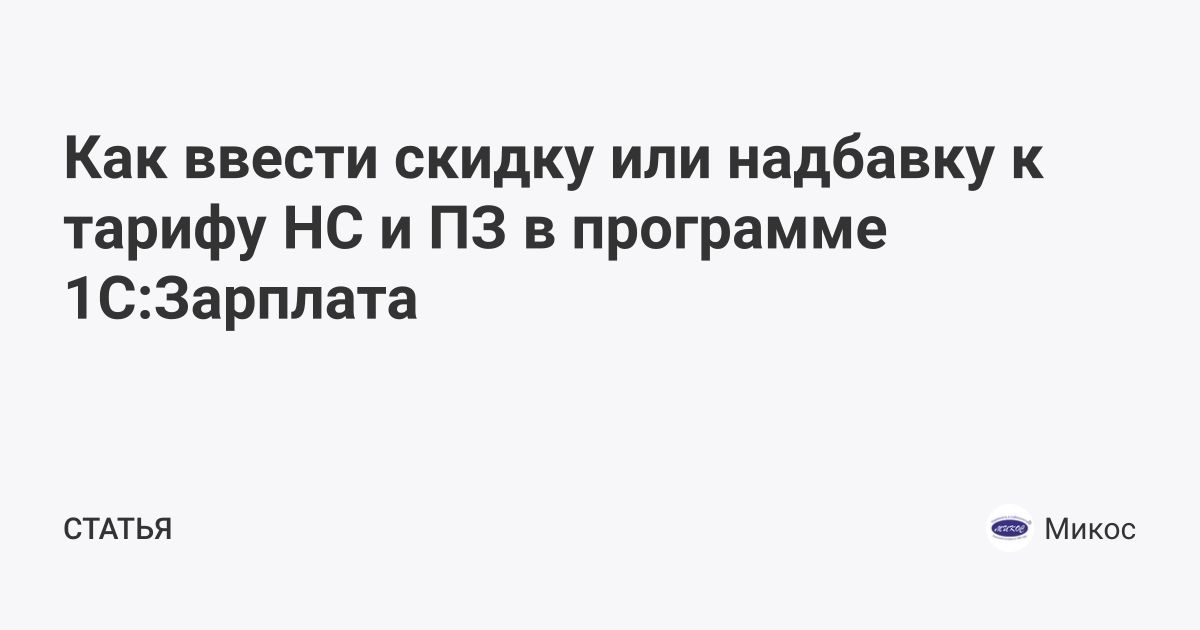 Как ввести скидку или надбавку к тарифу НС и ПЗ в программе 1С:Зарплата