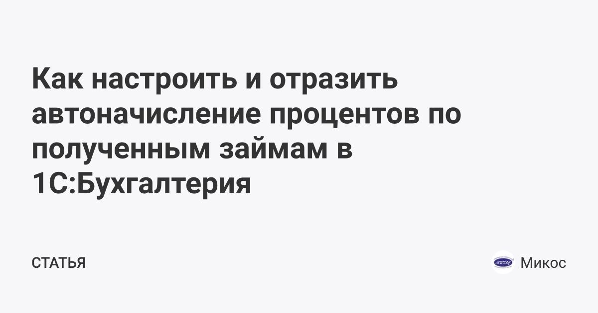 Как настроить и отразить автоначисление процентов по полученным займам в 1С:Бухгалтерия