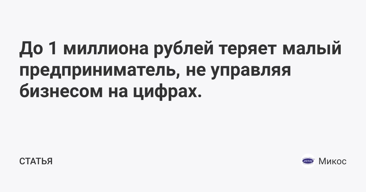До 1 миллиона рублей теряет малый предприниматель, не управляя бизнесом на цифрах.