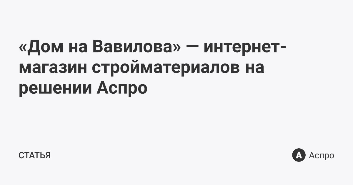 «Дом на Вавилова» — интернет-магазин стройматериалов на решении Аспро